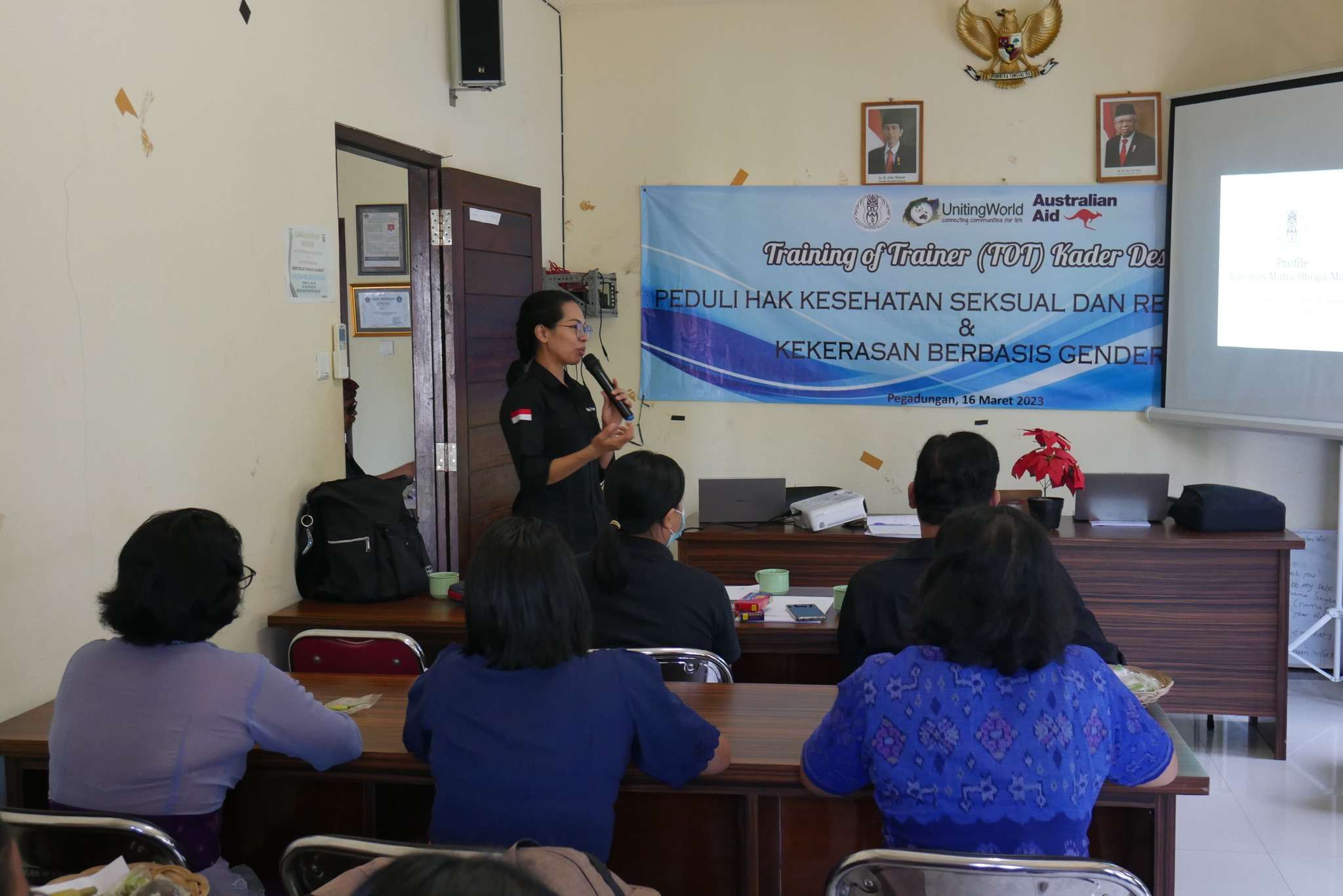 Yayasan Maha Bhoga Marga melakukan Training of Trainer (TOT) Peduli Hak Kesehatan dan Reproduksi & Kekerasan Berbasis Gender di desa Pegadungan Kabupaten Buleleng bersama Kepala Dusun dan Bidan yang ada di desa Pegadungan. TOT ini dibuka langsung oleh Kepala Desa Pegadungan.